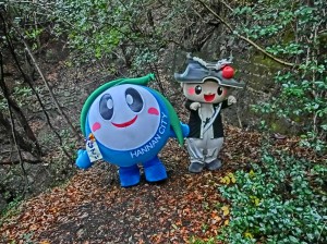そんな ちきりくん を見て はなてぃ が、今も安全に通れる「山中渓歴史街道」へと案内してくれました。