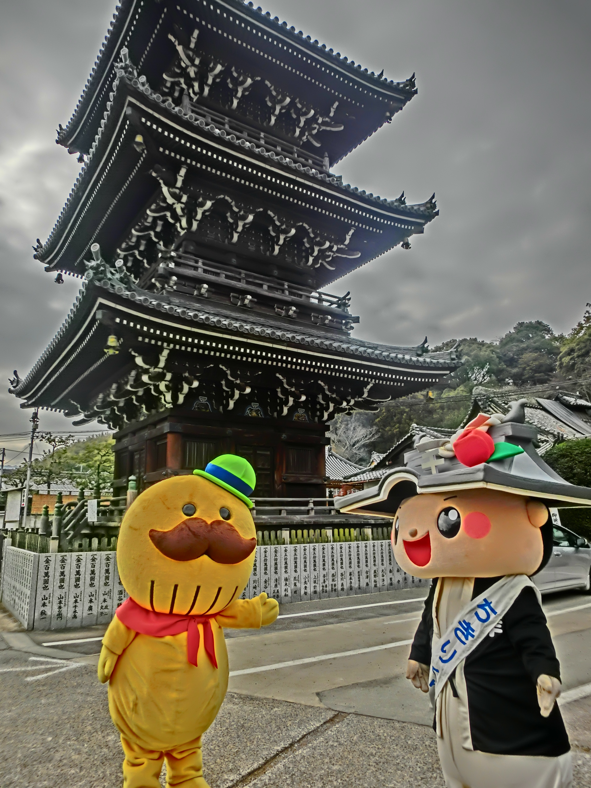 温泉で疲れをとった ちきりくん は、続いて和泉名所図会にも載っている「水間寺」を案内してもらうことに。