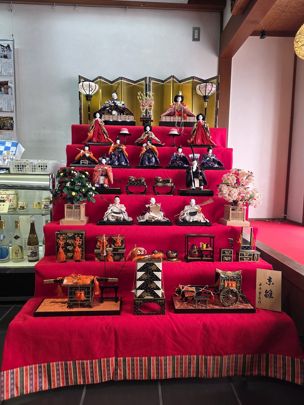 最近では、三段や五段の雛飾りも人気で、七段のものはなかなかお目にかかれなくなりました。