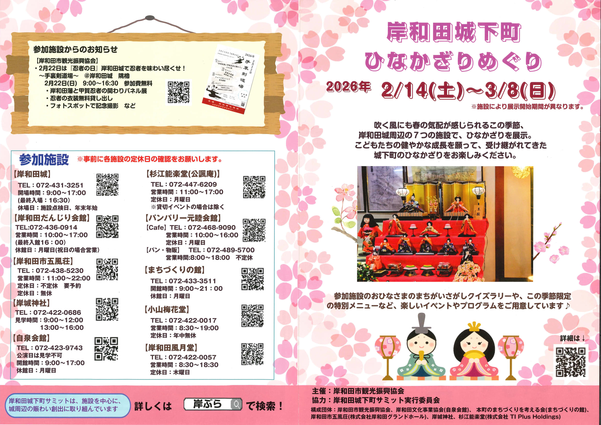 まちづくりの館・だんじり会館・岸和田城・岸和田市五風荘・岸城神社・自泉会館・杉江能楽堂